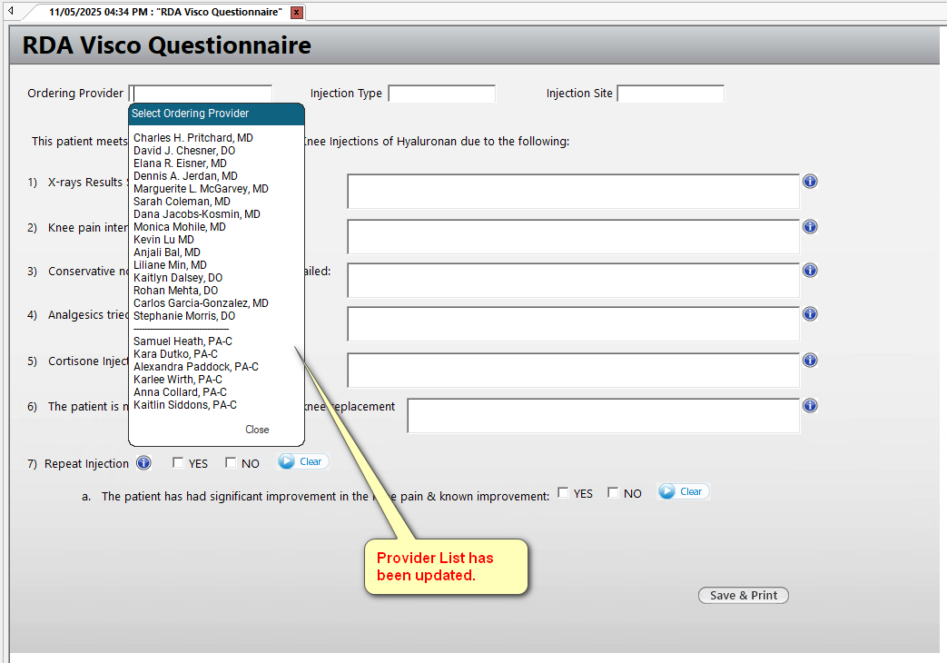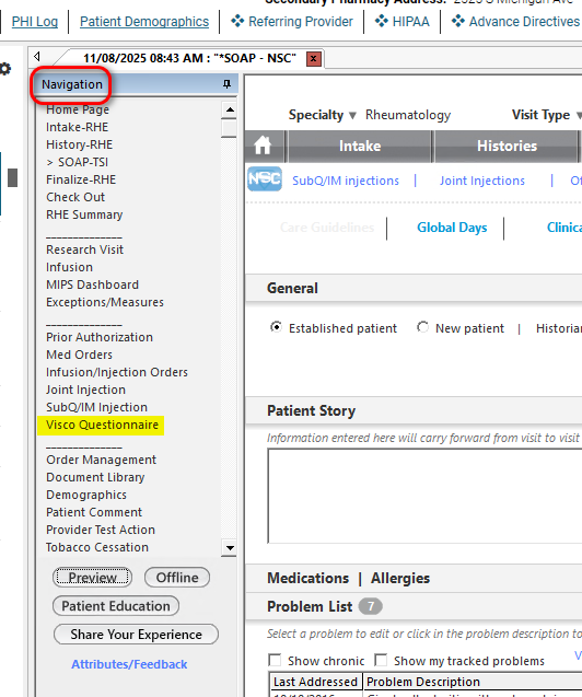 In the NextGen 8.3.1 upgrade, I’ve moved the link for the RDA Visco Questionnaire off the SOAP template and added it to the Navigation module. The link has also been renamed to: